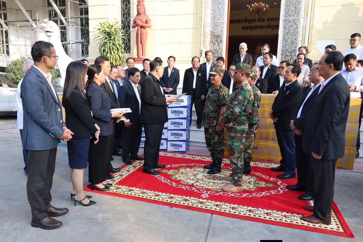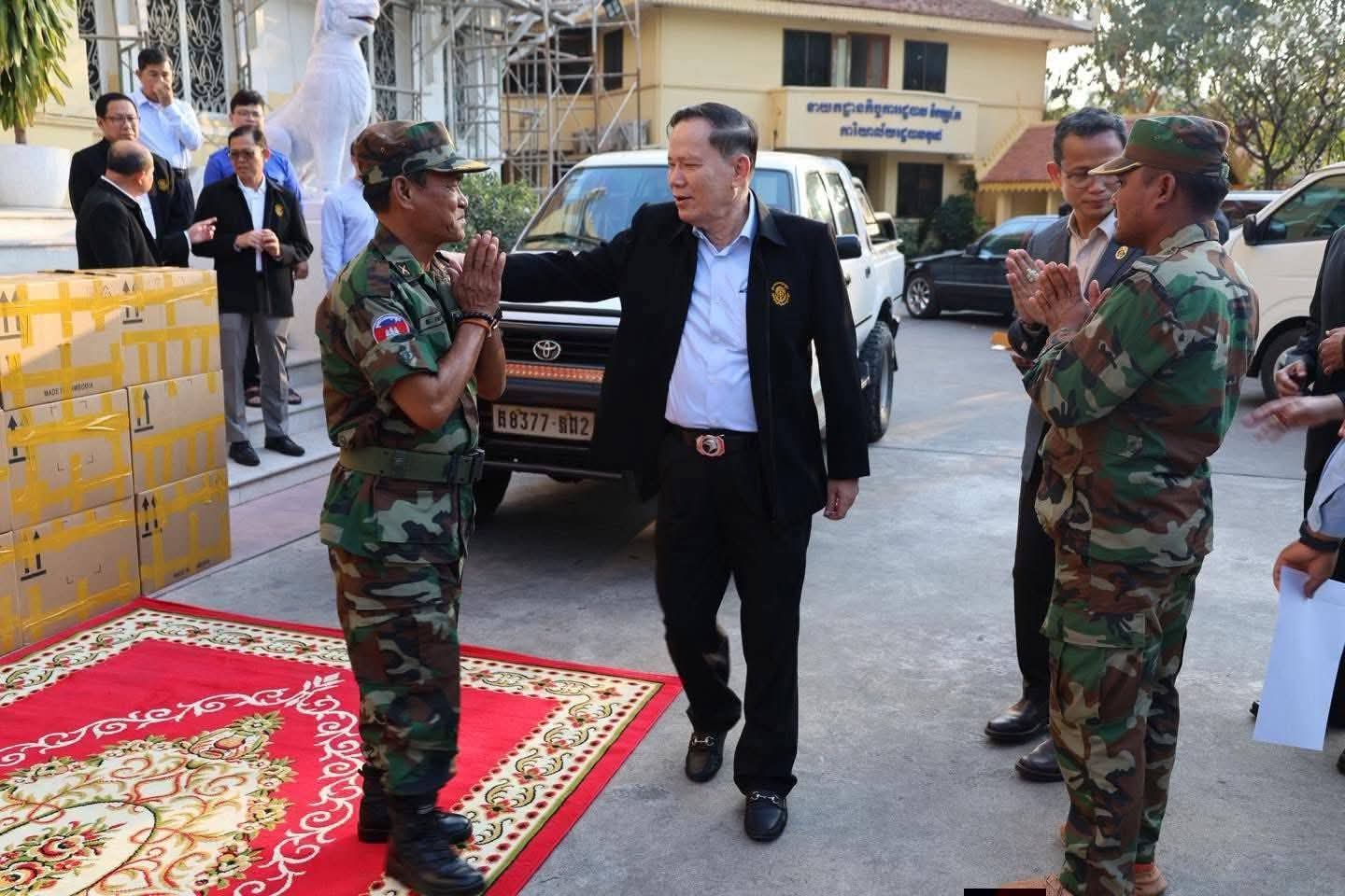 សូមបញ្ជាក់ថា អំណោយដែលបានប្រគល់ជូនតំណាងកងទ័ពរួមមាន៖ រថយន្ត តូយូតា ១ គ្រឿង, ប៊ីចេង១០គីឡូ, ចង្ក្រានហ្គាស ៧០ រួមនឹងកំប៉ុងហ្គាសចំនួន២៧០ និងឧបករណ៍សម្រាប់បញ្ចូលហ្គាសចំនួន១គ្រឿង, ទឹកបរិសុទ្ធ២២០កេស, ទឹកត្រី ២១យួរ, ទឹកស៊ីអ៊ីវ ២២យួរ, ប្រេងឆា ២២ដប, សៀង១៤ដប, ប្រហុក២គីឡូ, ត្រីងៀត៧០គីឡូ, អំបិល៤៨គីឡូ, នំ២២កញ្ចប់, ថ្នាំពេទ្យ និងសម្ភារសង្គ្រោះបន្ទាន់មួយកេស ដែលសរុបជាថវិកាប្រមាណជិត៦៧លានរៀល៕