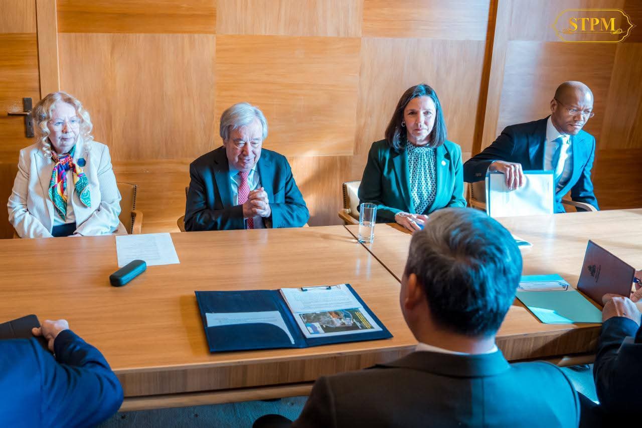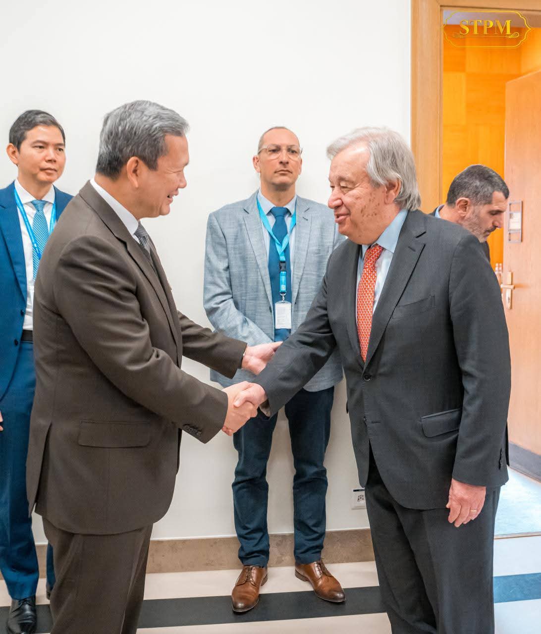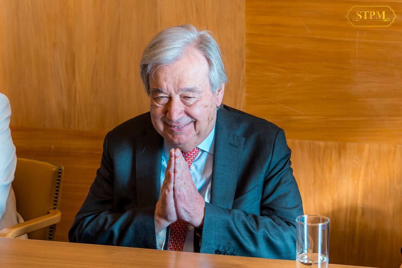 Receiving a courtesy call and having a discussion with His Excellency António Guterres, Secretary-General of the United Nations.
