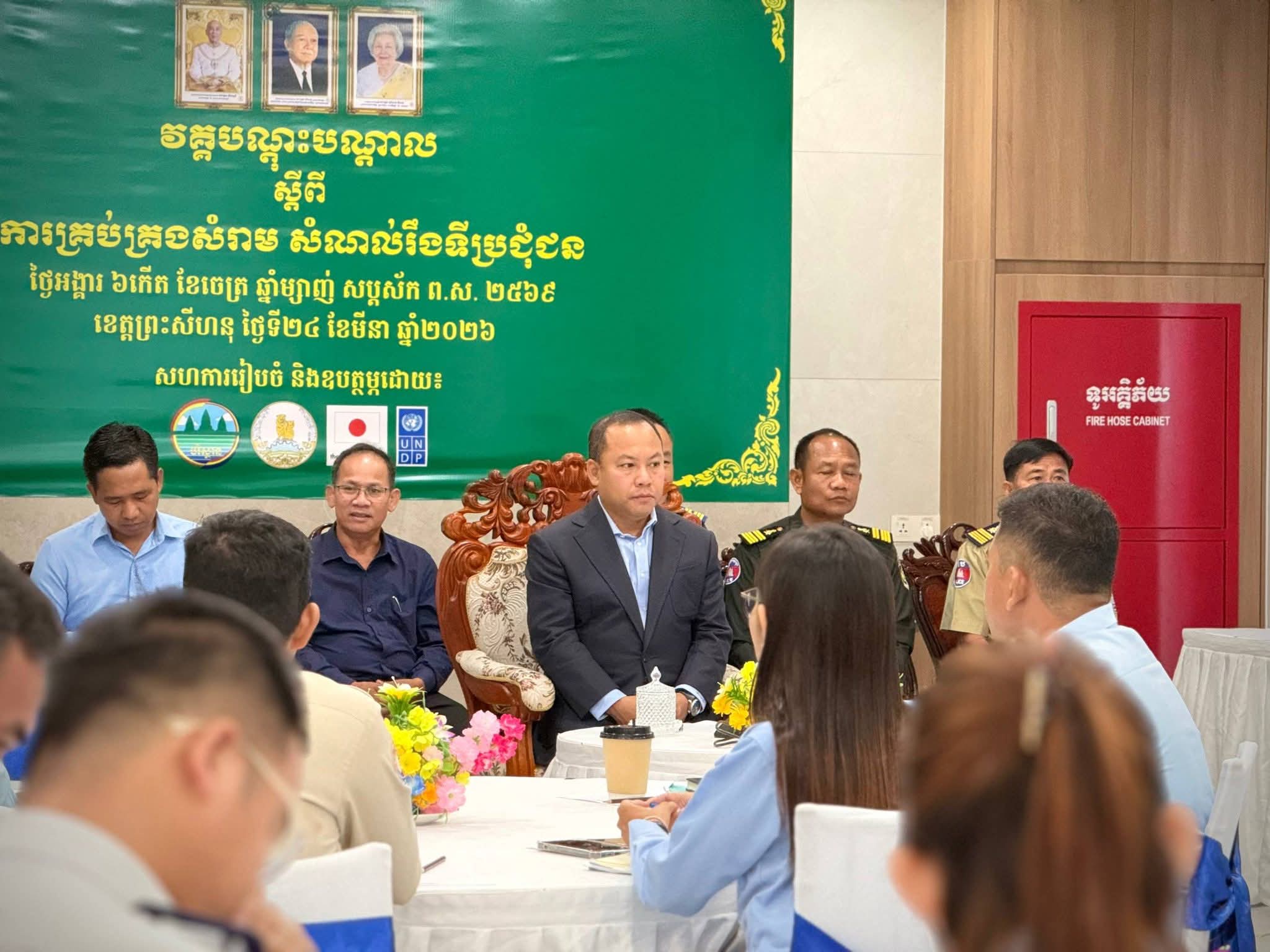 ថ្ងៃទី២៤ ខែមីនា ឆ្នាំ២០២៦ លោក ឡុង ឌីម៉ង់ អភិបាលរងខេត្តព្រះសីហនុ បានអញ្ជើញជាអធិបតីក្នុងពិធីបើកវគ្គបណ្តុះបណ្តាល ស្តីពី ការគ្រប់គ្រងសំរាម សំណល់រឹង ទីប្រជុំជន ដោយមានការចូលរួមពីតំណាងមន្ទីរ-អង្គភាពពាក់ព័ន្ធ នៅសណ្ឋាគារ Seascape Palace ខេត្តព្រះសីហនុ។